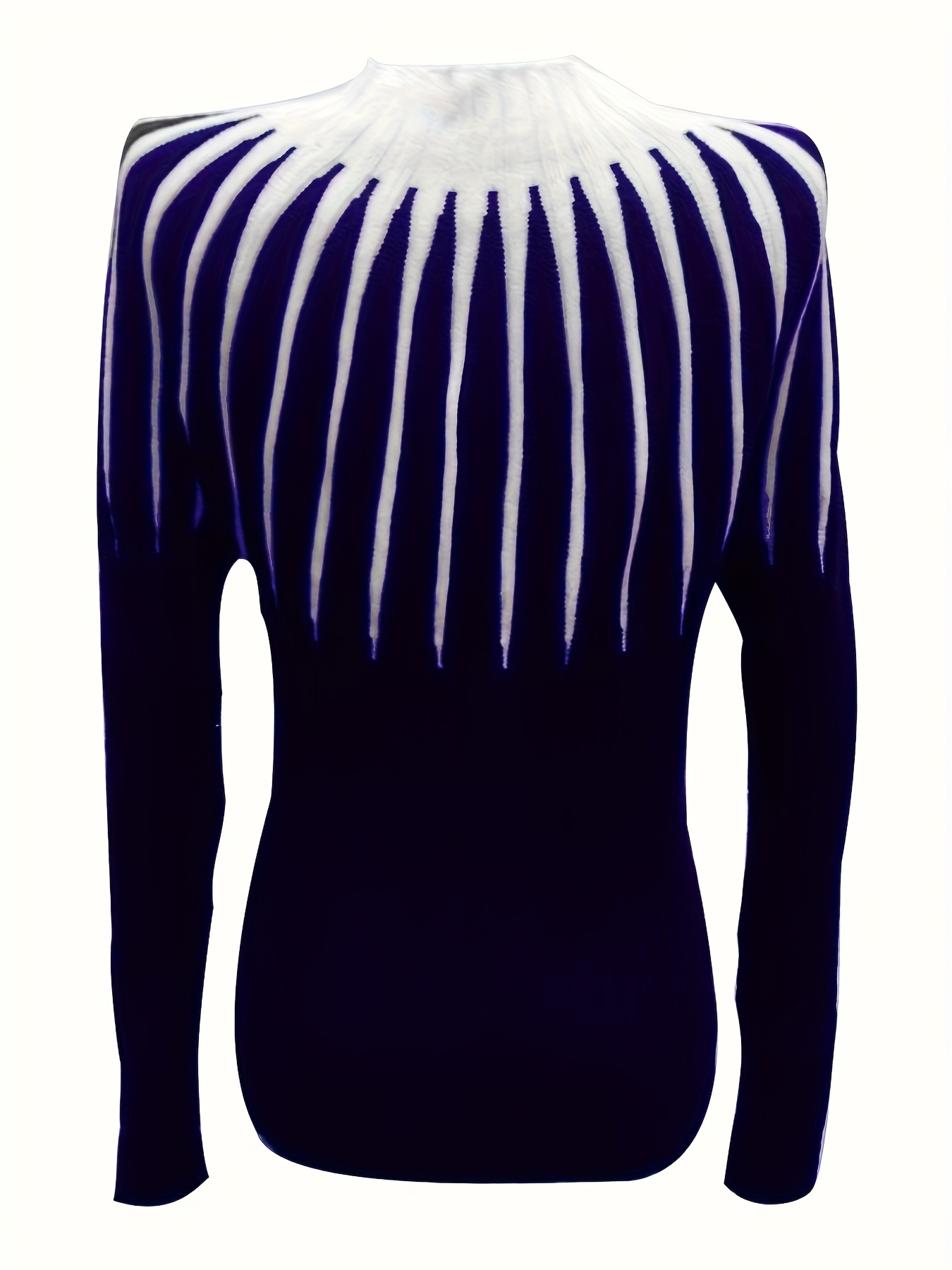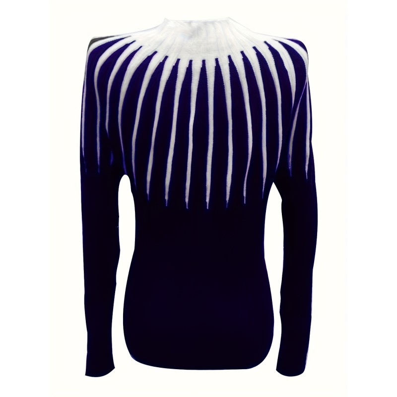 1pc Elegant Plus Size Women's Striped Knit Long Sleeve Top, Polyester Stretchy Pullover Sweater with Contrast Color Detail, Round Neck, for Spring/Autumn