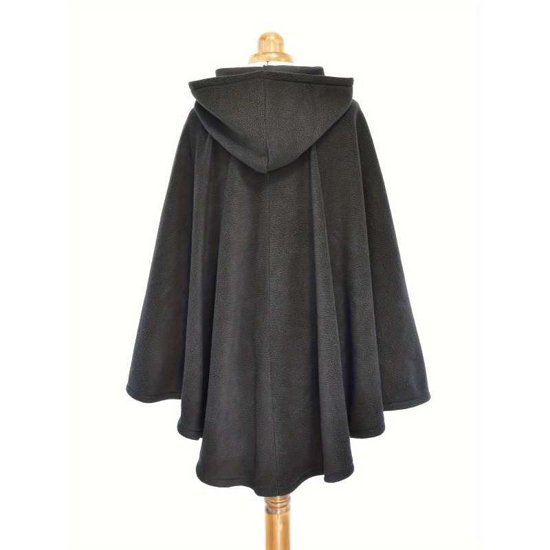 Elegant Black Tassel Hooded Shawl - One Size Fits All, Polyester, V-Neck, Sleeveless, Perfect for Fall/Winter