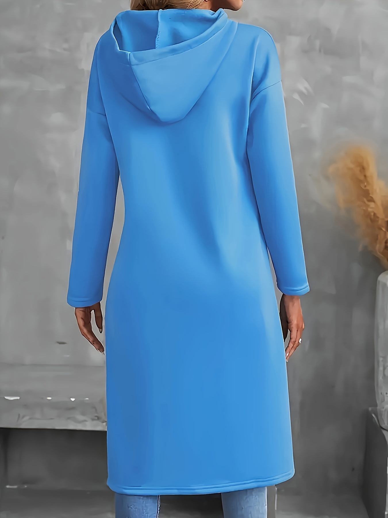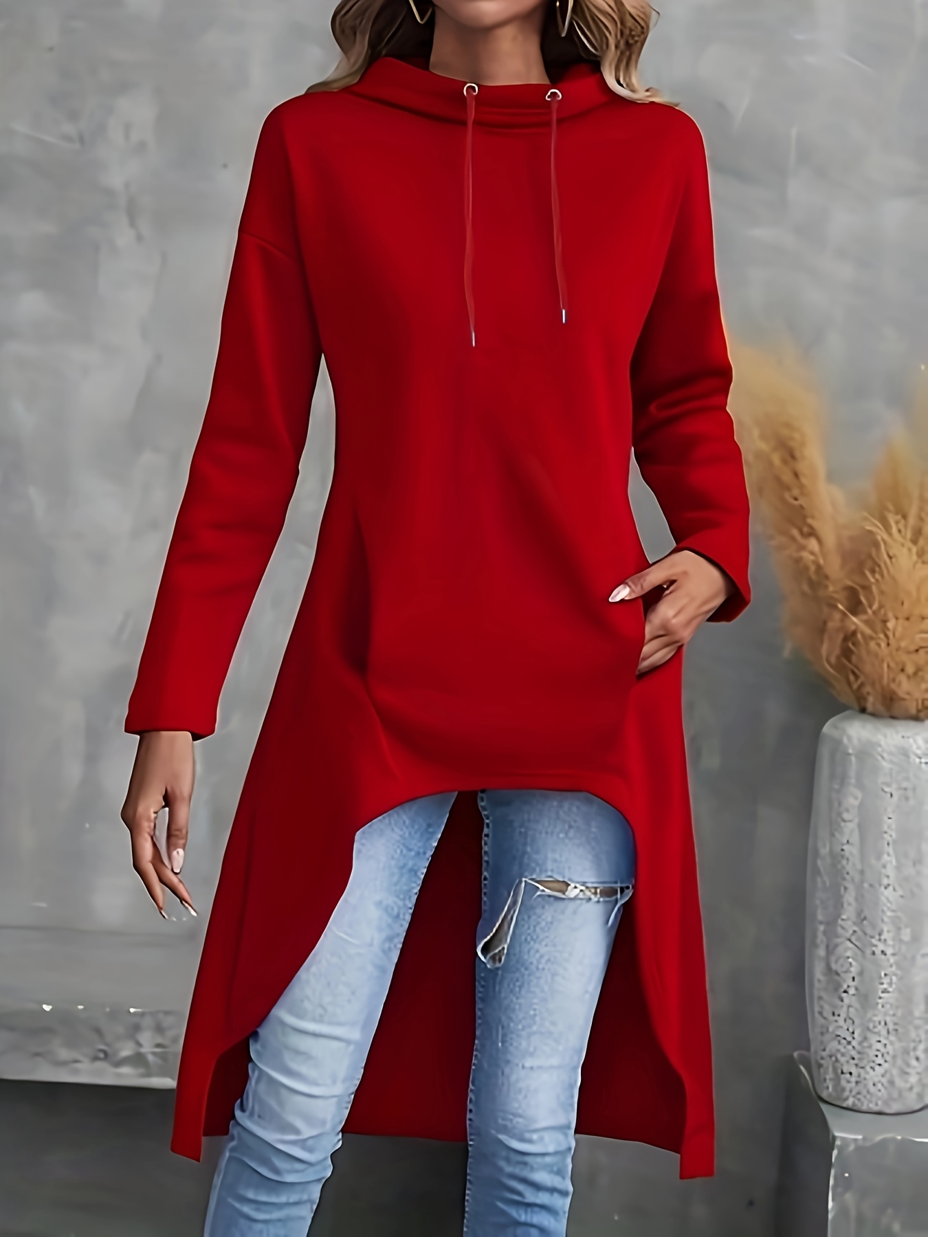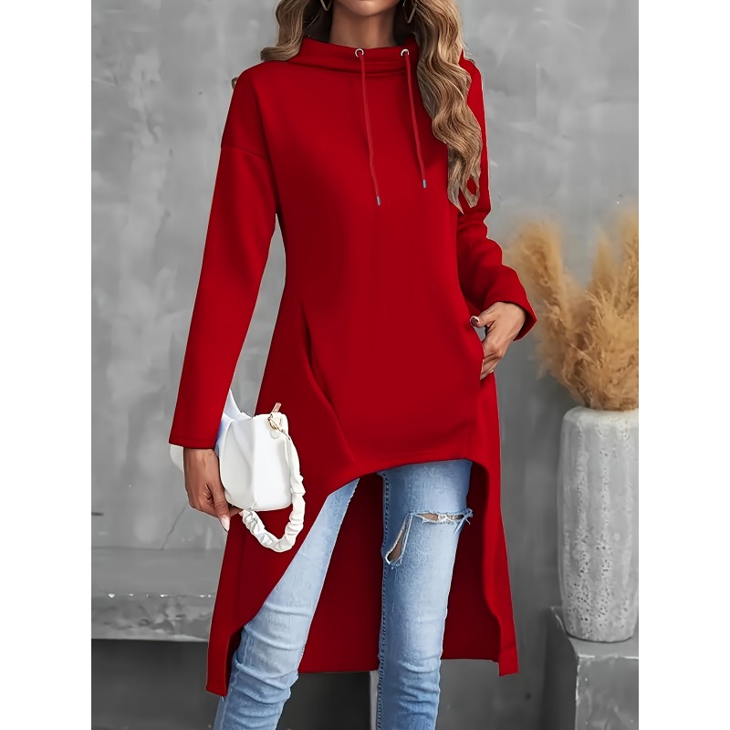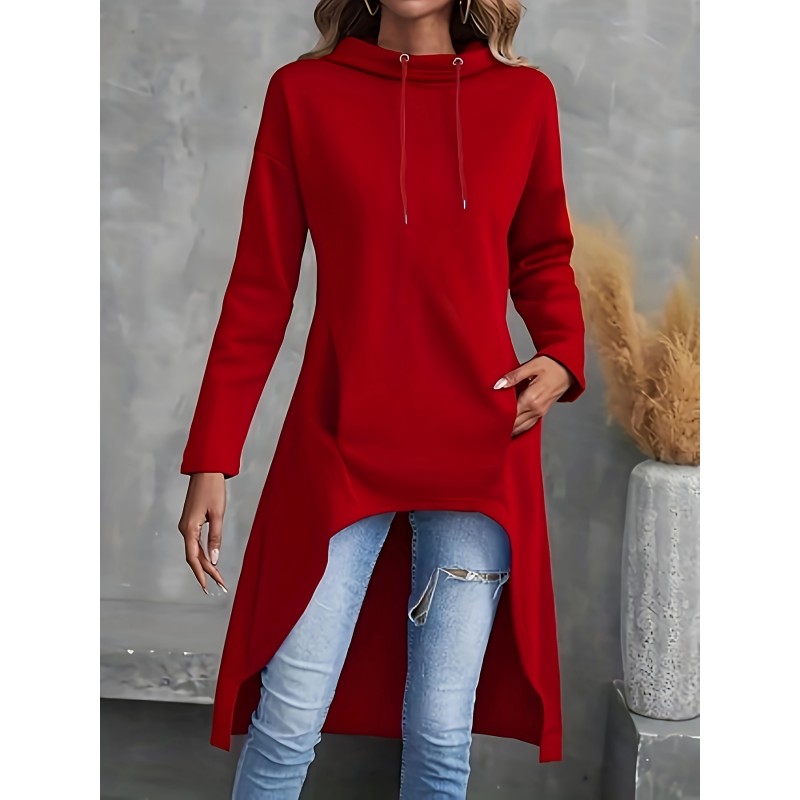 Elegant Women'S Plus-Size Hoodie with Drawstring, Long Sleeve, Asymmetrical Hem, and Pocket - Polyester Knit Fabric, Casual Fit for Autumn/Winter
